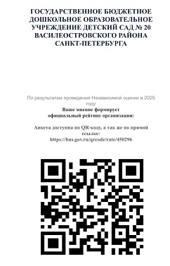 - Ваше мнение формирует официальный рейтинг организации: Анкета доступна по QR-коду, а также по прямой ссылке:https://bus.gov.ru/qrcode/rate/450296